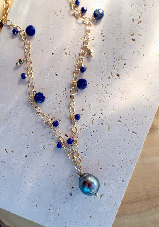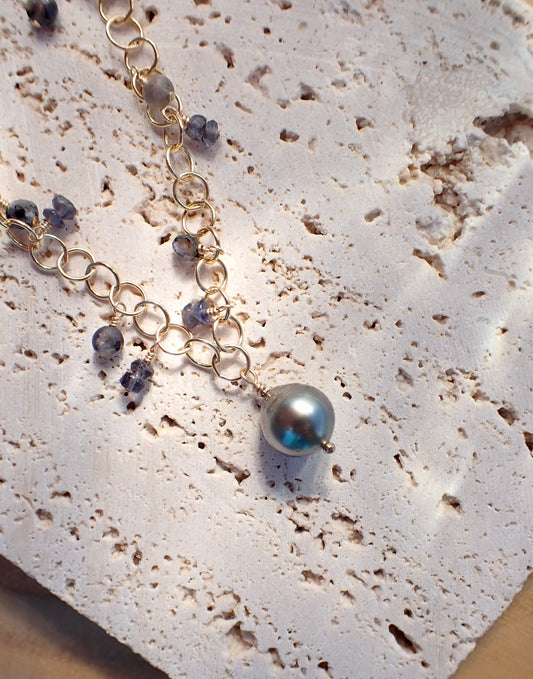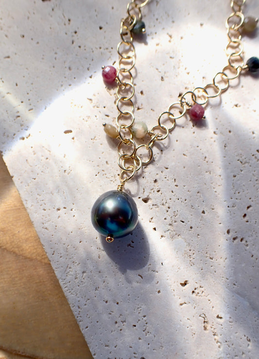 Tahitian Pearl Necklace with Watermelon Tourmaline